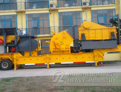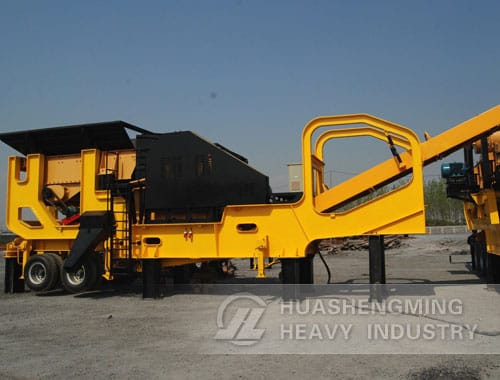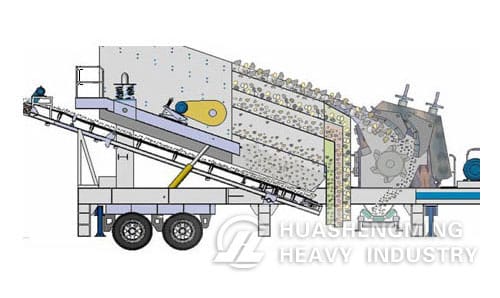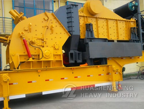 Materials by the feeder evenly delivered to the crusher, impact crusher is initial crushing, constitute a closed system circular with vibrating screen, materials achieve to cycle broken, finished materials go to output by the conveyor, and go through continuous crushing operations. According to actual needs of production, we can remove the circular vibrating screen from impact mobile crushing plant, achieve directly to preliminary broken, easy to operate with other crushing equipment, flexible to use.