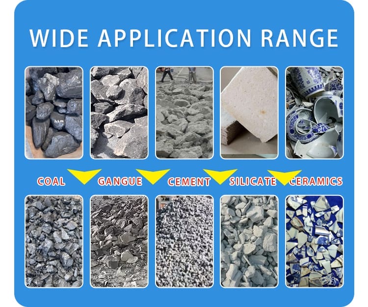 Application scope:River pebbles, calcite, quartz, marble, cobblestone, bentonite, iron ore, bluestone, mountain stone, slag, limestone, weathered sand, diabase, granite, basalt, etc.